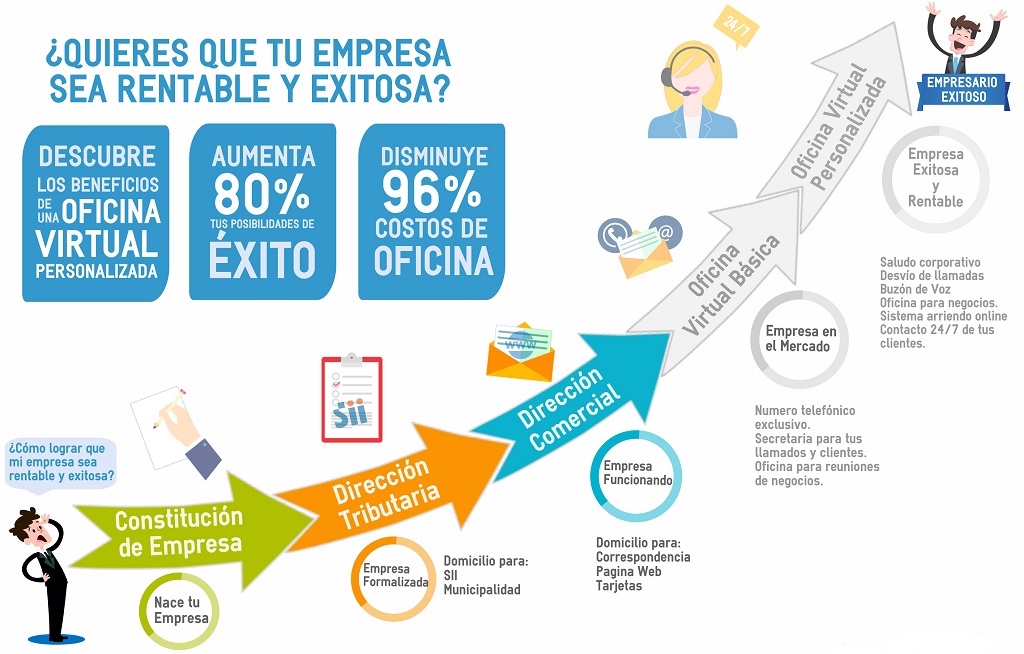 - Elige la ubicación que más te convenga, como una oficina virtual en Santiago Centro, Providencia, o Viña del Mar.